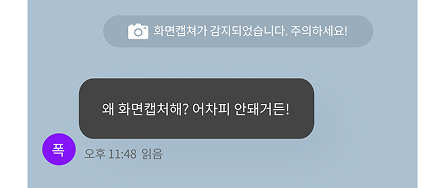 상대가 화면캡처를 하면 채팅방에 알려줍니다. (ios에서만 가능)